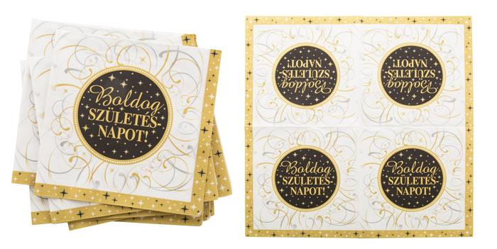 Szalvéta, 33x33 cm, "Boldog Születésnapot", elegáns leírása
