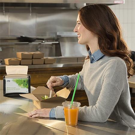 A Tork Xpressnap szalvétaadagolók tökéletesek önkiszolgáló éttermekbe. Ezzel a rendszerrel 25%-kal csökkenthető a szalvétafogyasztás a hagyományos szalvétaadagolókhoz képest. A Tork Xpressnap egyrétegű, natúr adagolós szalvéták 100%-ban újrahasznosított rostanyagokból készültek; a szalvéta remek választás, ha fontos Önnek a környezetvédelem, és ezt szeretné mások tudtára is adni.
