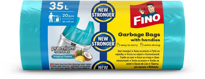 A FINO Premium Handles szemeteszsák köthető fülének köszönhetően könnyen és higiénikusan zárható, illatosított, enyhítheti a kellemetlen szagokat.