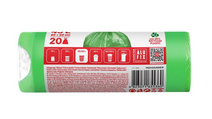 Prémium minőségű, nagy teherbírású szemeteszsák. Minden Alufix szemeteszsák újrahasznosított műanyag felhasználásával készül. Amikor Alufix szemeteszsák mellett dönt, a Föld erőforrásainak körforgását támogatja.