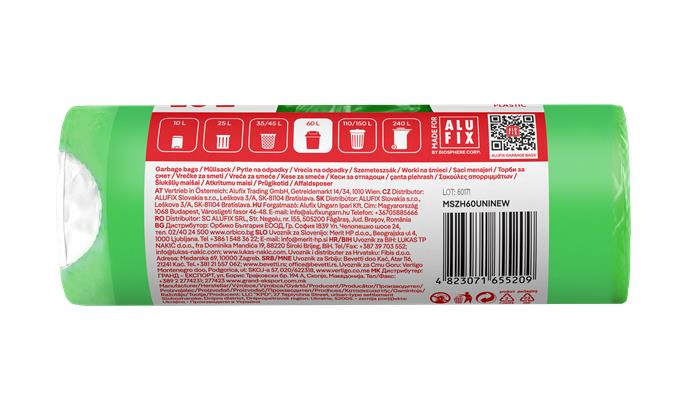 Szemeteszsák, zárószalagos, 60 l, 20 db, 64x71 cm, 16 µ, ALUFIX, zöld