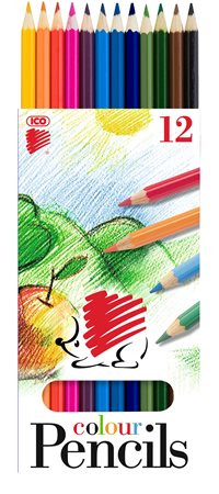 Színes ceruza készlet, hatszögletű, ICO "Süni", 12 különböző szín leírása