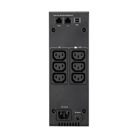Szünetmentes tápegység Line-interaktív kapcsolódással -kivitel: torony -USB -bemeneti csatlakozó: C14 -kimeneti csatlakozó: C13 -kimeneti csatlakozók száma: 3 + 3 csak túlfeszültség -kimeneti teljesítmény: 700 VA -beépített adatvonal-védelem: van -méretek: 2600 x 250 x 87 mm (mé x ma x szé) -súlya: 5,98 kg