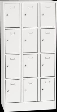Tárolószekrény erősített acélból, zárható, 12 rekeszes