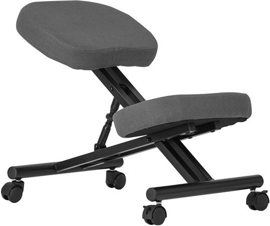 Térdeplőszék, fekete-szürke szövetborítás, fém váz