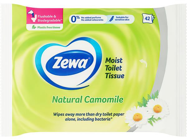 Zewa nedves toalettpapír, természetesen gyengéd kamillakivonattal. Tisztaság és frissesség az egész családnak.