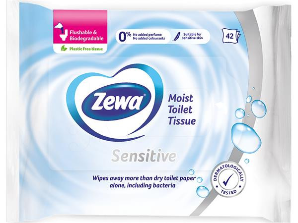 Zewa Sensitive nedves toalettpapír: alapos tisztaság, minden egyébtől mentesen.