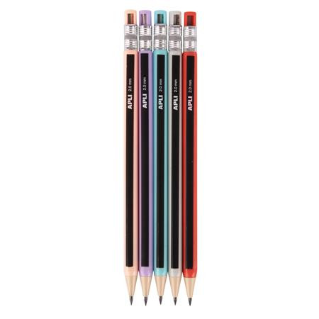 Töltőceruza display, mechanikus, 2 mm, hegyezővel, ceruzahatású, APLI, vegyes színekben, 25 db