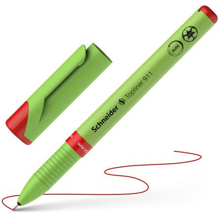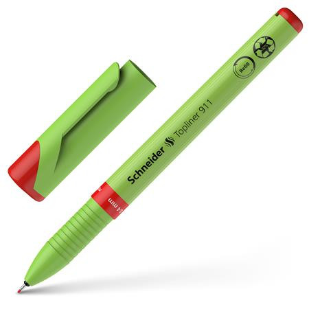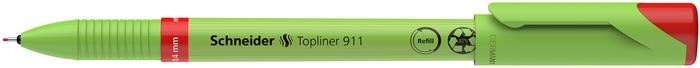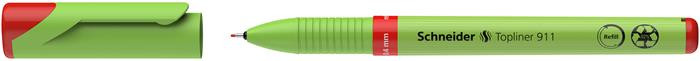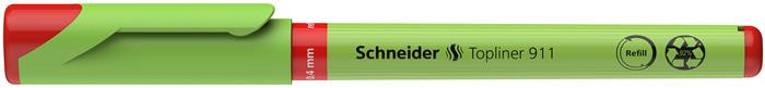 Tűfilc, 0,4 mm, cserélhető betétes, újrahasznosított tolltest, SCHNEIDER "Topliner 911", piros