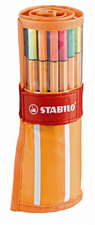 Tűfilc készlet, 0,4 mm, felcsavarható szett, neon színekkel, STABILO "Point 88", 30 különböző szín
