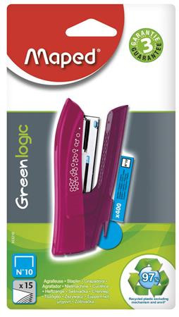 Tűzőgép, No. 10, 15 lap, MAPED "Greenlogic Pocket", vegyes színek