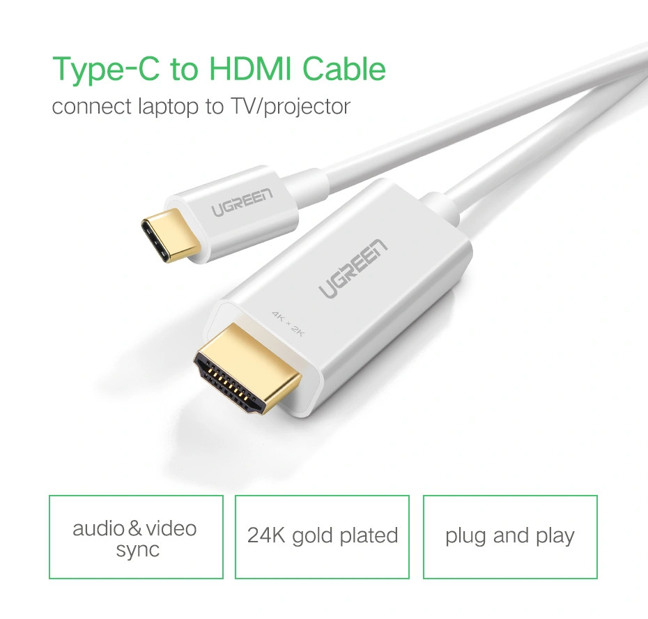 Vásárold meg most szuper áron UGREEN USB-C - HDMI kábel apa - apa ABS ház 1.5 m fehér MM121 termékünket és válogass több, mint 25.000 termékünk közül a kedvezőbb árakért! Azonnal, valós magyarországi készletről szállítjuk raktáron lévő termékeinket, ráadásul azokat akár még a mai napon átadjuk a futárszolgálatnak és 1-2 munkanapon belül meg is kaphatod! Rendelhető termékeink esetén kérjük érdeklődj a pontos beérkezésről.