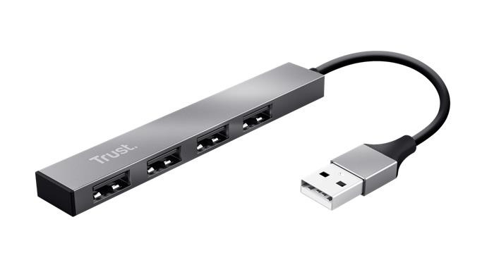 USB elosztó-HUB, 4 port, USB 2.0, TRUST "Halyx", ezüst leírása