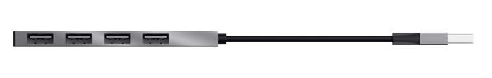 USB elosztó-HUB, 4 port, USB 2.0, TRUST "Halyx", ezüst