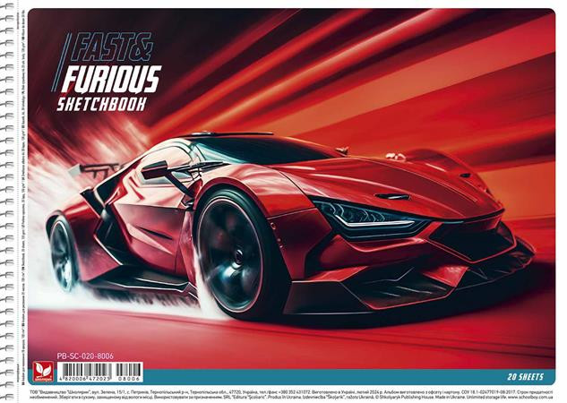 Vázlatfüzet, spirál, A4, 120 g, 20 lap, SHKOLYARYK "Fast&Furious" leírása