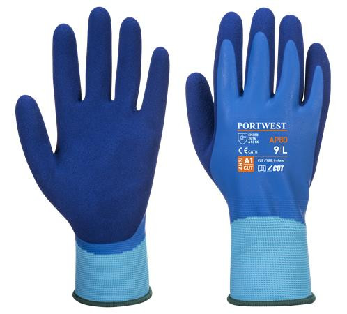 Védőkesztyű, latex, latexhab, tenyerén mártott, XL méret "Liquid Pro", kék