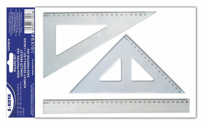 Vonalzókészlet, műanyag, 3 darabos, SAKOTA leírása