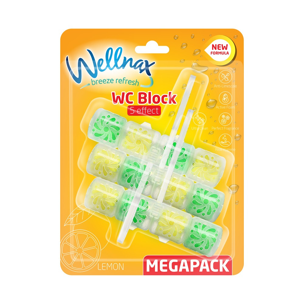 A Wellnax citrom WC illatosító termék célja, hogy a WC használata során frissességet és tisztaságot biztosítson, miközben kellemes levendulás illattal látja el a fürdőszobát.