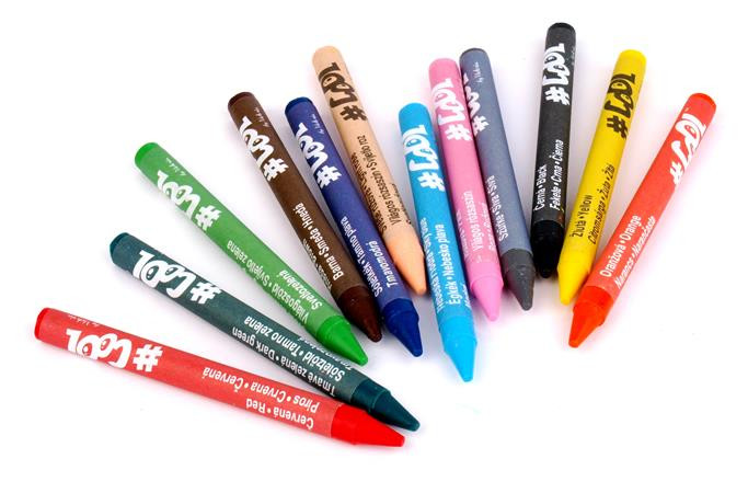 A készletben összesen 12 db zsírkréta található: citromsárga, narancssárga, piros, világos rózsaszín, pink, égkék, sötétkék, világoszöld, sötétzöld, barna, szürke, fekete színekben.