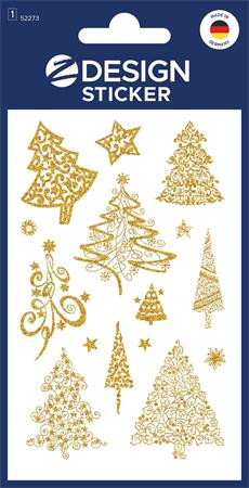 Matrica, papír, 1 ív, 76x120 mm, AVERY ZWECKFORM, "Z-Desing No.52273", arany fenyőfák