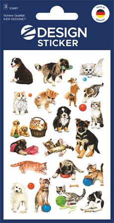 Matrica, papír, 3 ív, 76x120 mm, AVERY ZWECKFORM, "Z-Desing No.53487", macska és kutya