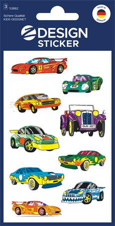 Matrica, papír, 3 ív, 76x120 mm, AVERY ZWECKFORM, "Z-Desing No.53882", színes autók