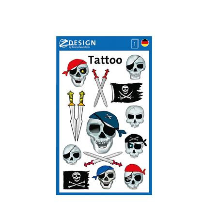 Matrica, tetoválás, 1 ív, 76x120 mm, AVERY ZWECKFORM, "Z-Desing No.56632", kalóz halálfejek kardokkal