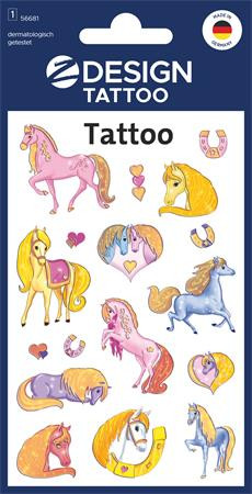 Matrica, tetoválás, 1 ív, 76x120 mm, AVERY ZWECKFORM, "Z-Desing No.56681", csillámos lovak