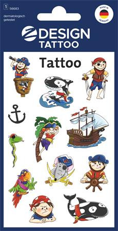 Matrica, tetoválás, 1 ív, 76x120 mm, AVERY ZWECKFORM, "Z-Desing No.56683", kalózok