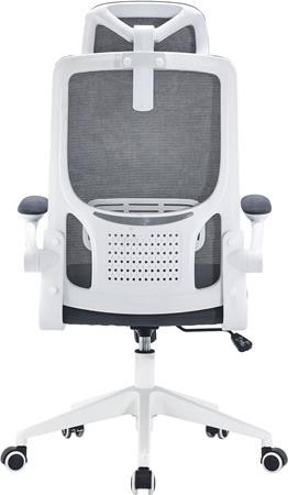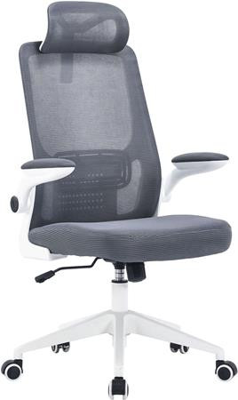 Irodai forgószék, szürke hálós háttámla, szürke szövetborítás, fehér műanyag váz és lábkererszt, "Mulberry"