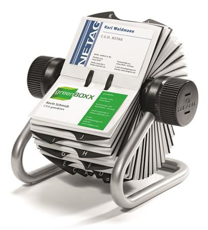 Névjegykártyatartó, fém, 400 db-os, forgatható, fekvő, DURABLE, "VISIFIX®", ezüst leírása