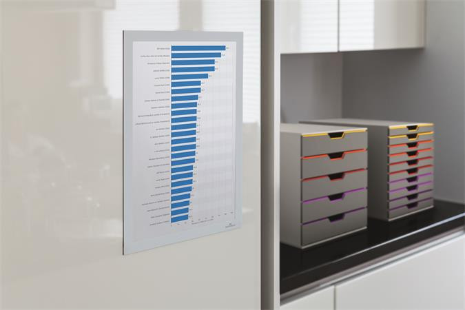 A DURAFRAME® segítségével profin és kényelmesen helyezhetjük ki dokumentumainkat bármilyen sima, kemény felületre, például ablakra, iratszekrényre vagy ajtóra.