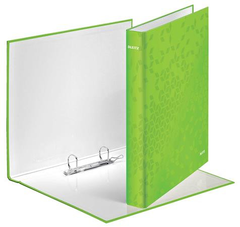 Gyűrűs könyv, 2 gyűrű, D alakú, 40 mm, A4 Maxi, karton, LEITZ "Wow", zöld leírása