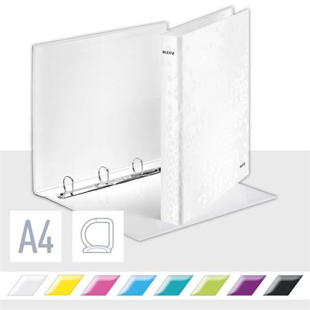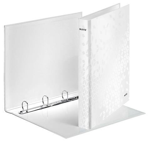 Gyűrűs könyv, 4 gyűrű, D alakú, 40 mm, A4 Maxi, karton, LEITZ "Wow", fehér leírása