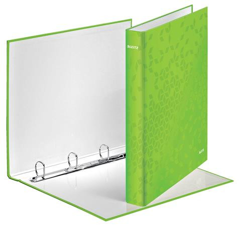 Gyűrűs könyv, 4 gyűrű, D alakú, 40 mm, A4 Maxi, karton, LEITZ "Wow", zöld leírása