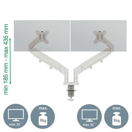 -erős és stabil kialakítás, ideális két 17"-32" méretű, egyenként legfeljebb 9 kg súlyú lapos vagy hajlított monitorhoz