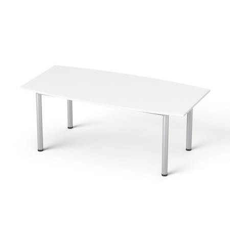 Tárgyalóasztal, íves, szürke fémlábbal, 80/95x190 cm, MAYAH "Freedom SV-43", fehér