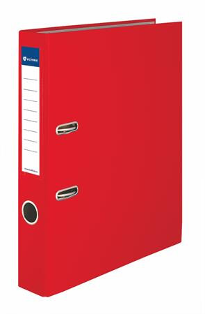 Iratrendező, 50 mm, A4, PP/karton, élvédő sínnel, VICTORIA OFFICE, "Basic", piros