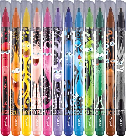 Filctoll készlet, 2,8 mm, kimosható, MAPED "Color'Peps Monster" 12 különböző szín leírása