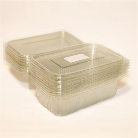 Ételtároló doboz, egybefedeles, újrahasznosított műanyag, szögletes, 1000 ml, 100 db, "Party", víztiszta
