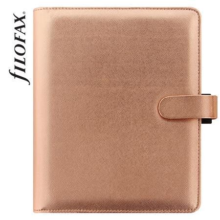 Kalendárium, gyűrűs, betétlapokkal, A5 méret, FILOFAX, "Saffiano Metallic", rózsaarany leírása