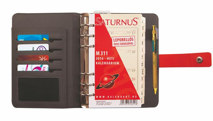 Kalendárium, gyűrűs, betétlapokkal, "S", műbőr, SATURNUS, "426", szürke-narancs