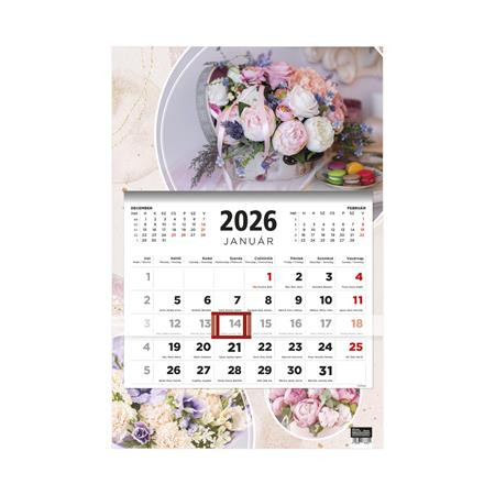 Naptár, speditőr, három hónapos, egy tömbős, TOPTIMER, "Virágok"