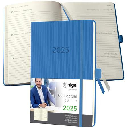 Naptár, A5, heti, 2025, kemény borító, SIGEL "Conceptum", porkék
