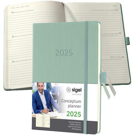 Naptár, A5, heti, 2025, kemény borító, SIGEL "Conceptum", mentazöld