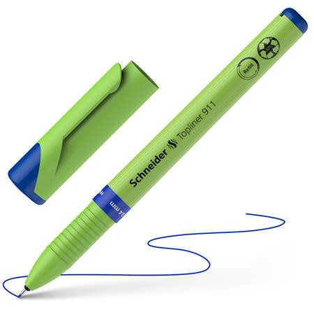 Tűfilc, 0,4 mm, cserélhető betétes, újrahasznosított tolltest, SCHNEIDER "Topliner 911", kék