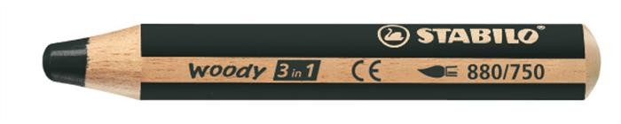 Színes ceruza, kerek, vastag, STABILO "Woody 3 in 1", fekete