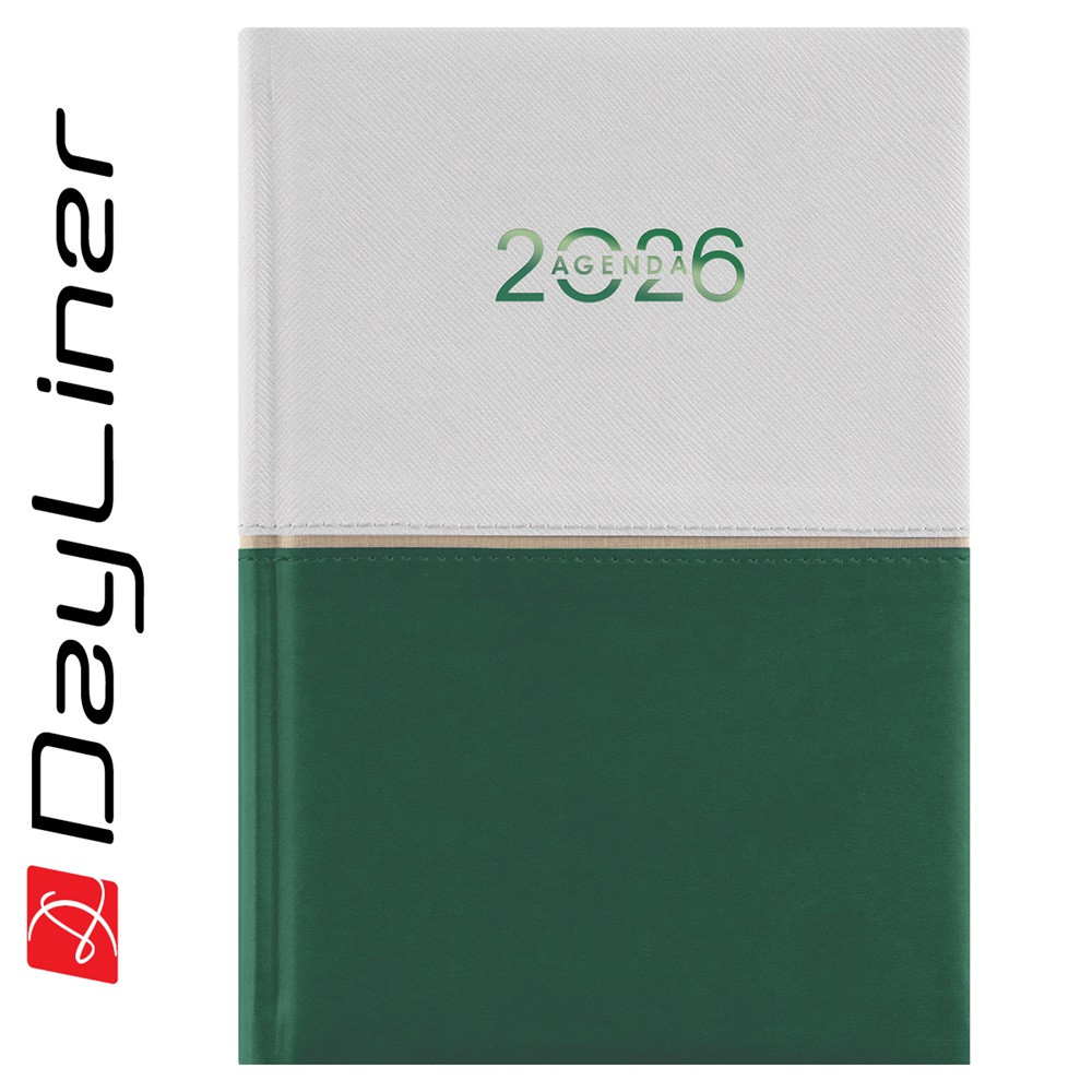 Határidőnapló Contrast A5 napi, fehér lapokkal fehér-zöld Dayliner 2026.