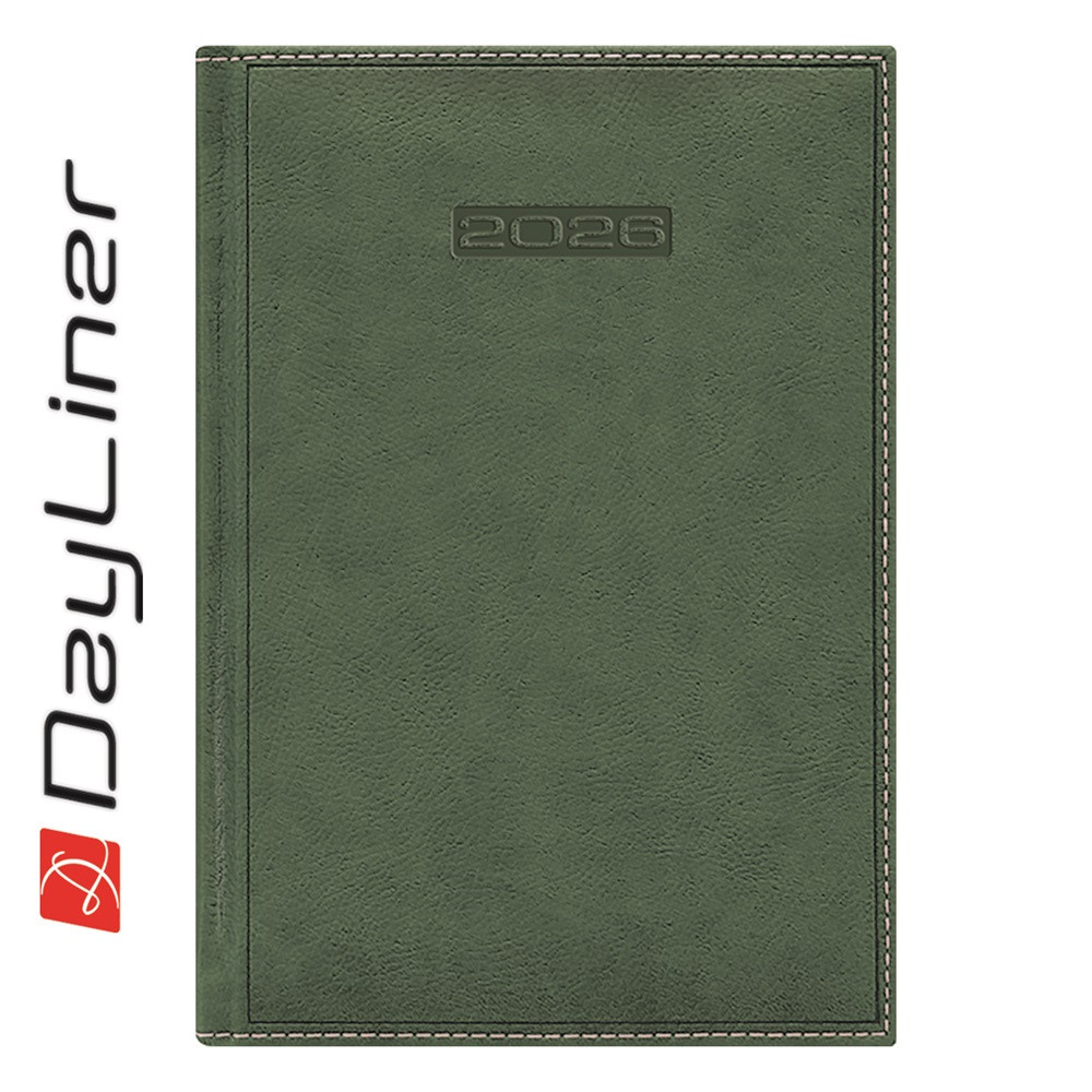 Határidőnapló Sherwood A5 napi, krémszínű lapokkal zöld Dayliner 2026.