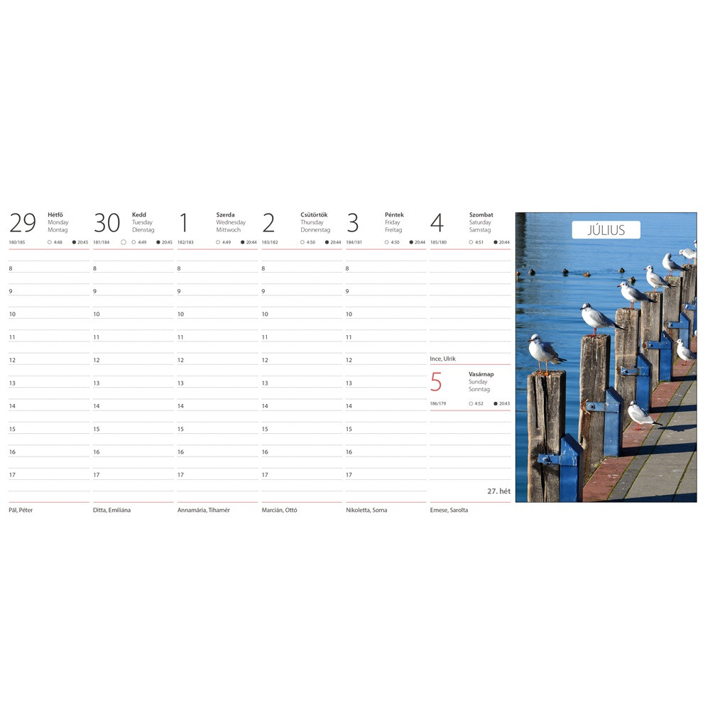 - Heti beosztású naptár, amely színes képekkel díszített.